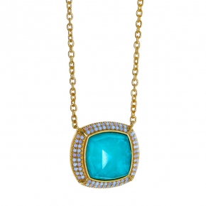 Necklace silver 925 yellow gold plated with doublet gem stones and zirconia
