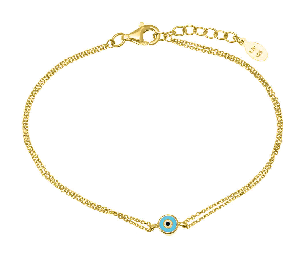 Bracelet silver 925 yellow gold plated & with enamel evil eye