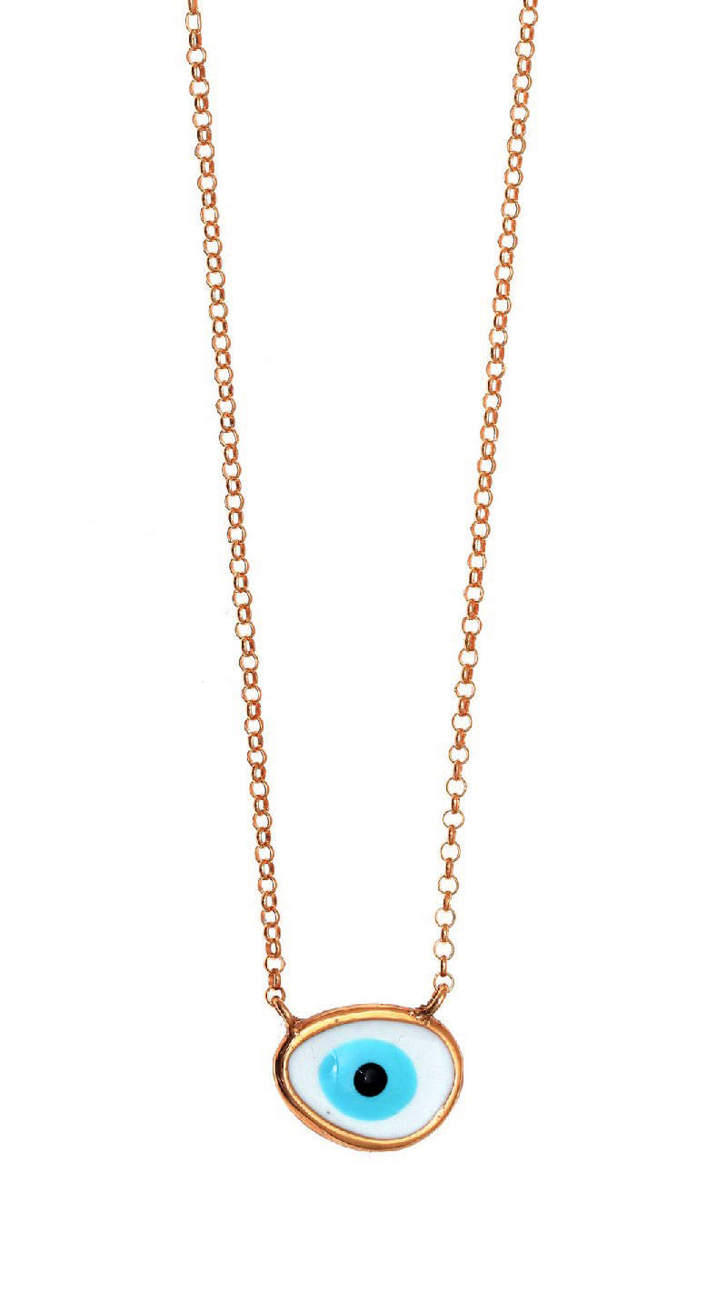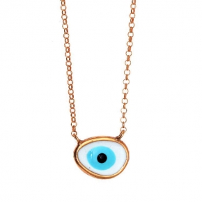 Necklace silver 925 pink gold plated, with enamel evil eye
