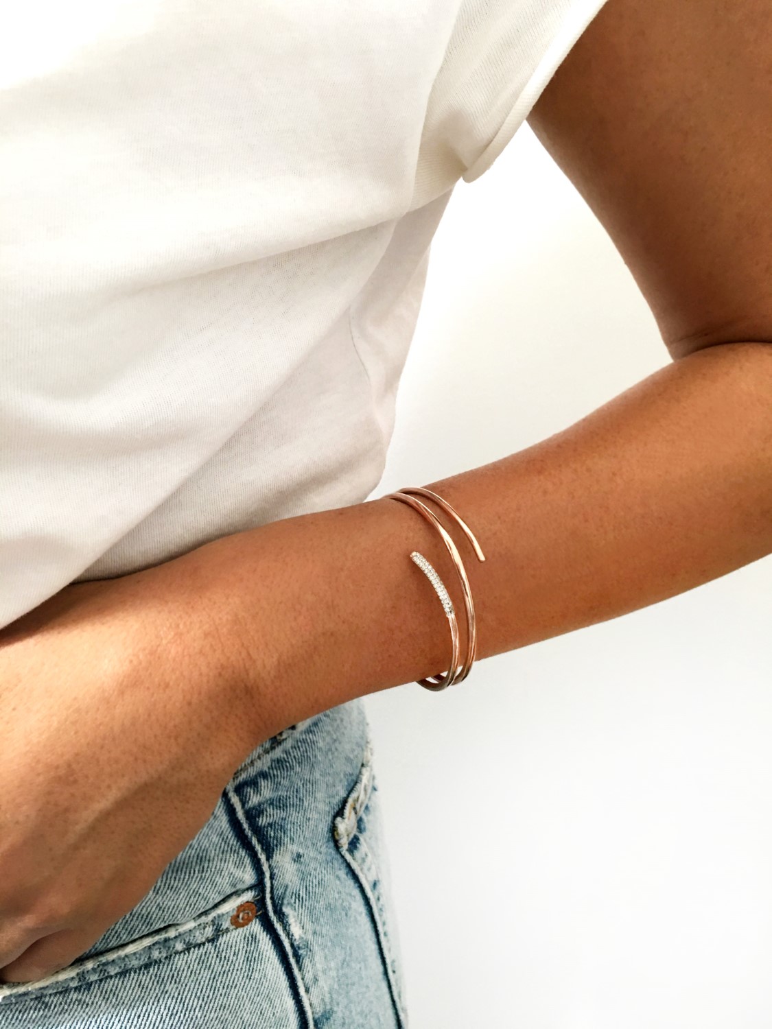 Avoid contact with perfumes, creams and water when possible to protect the plating on the jewelry. Gold plated jewelry should be gently cleaned with a soft polishing cloth.