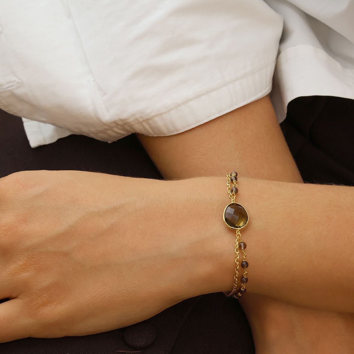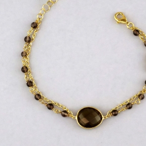 Bracelet silver 925 yellow gold plated with smoke quartz