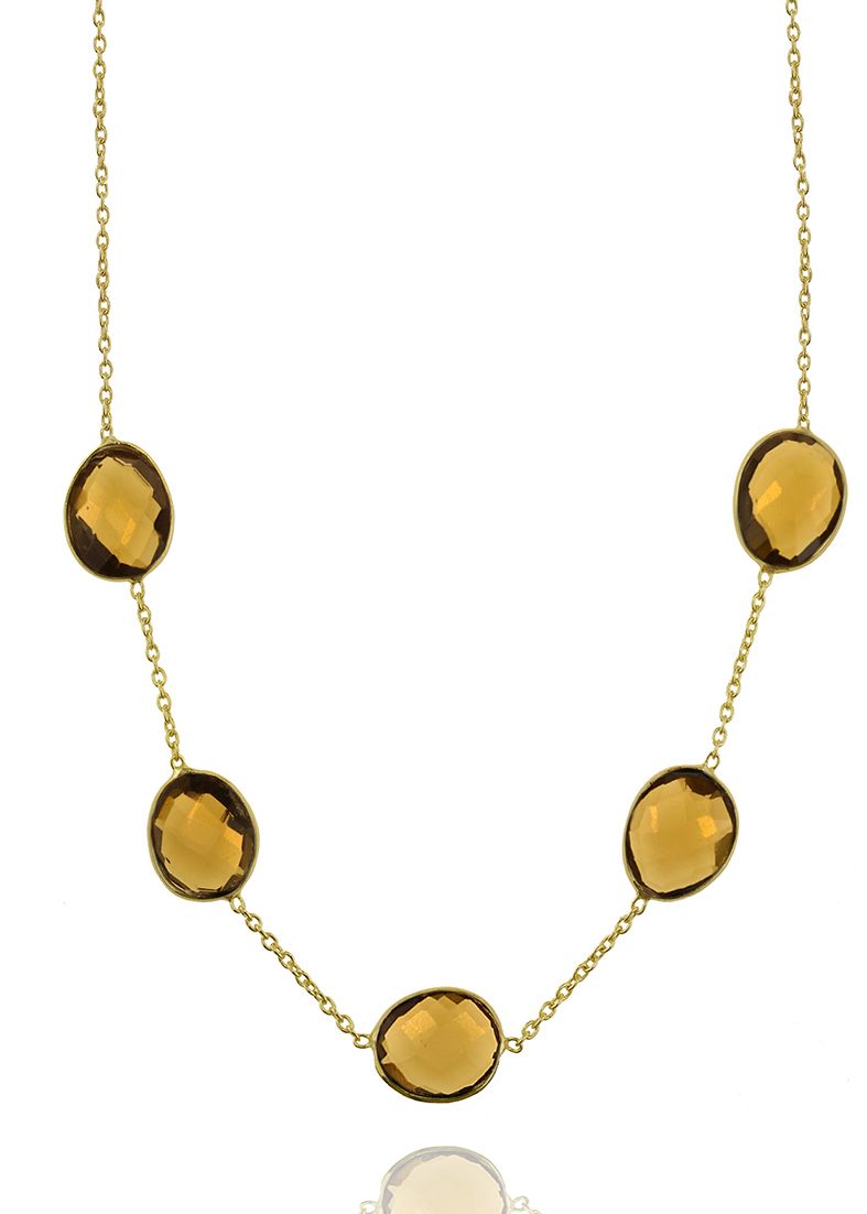 • Necklase silver 925 yellow gold plated with smoke quartz