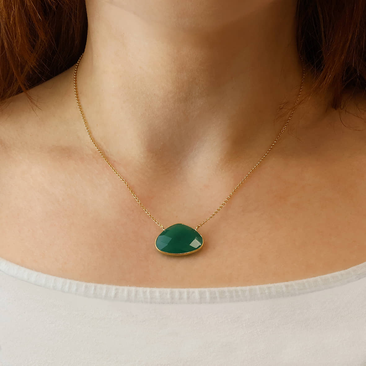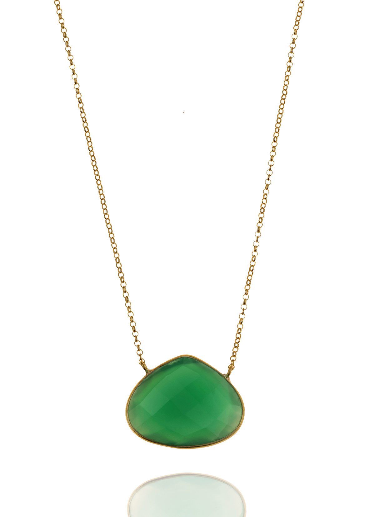 Necklace silver 925 yellow gold plated with green onyx