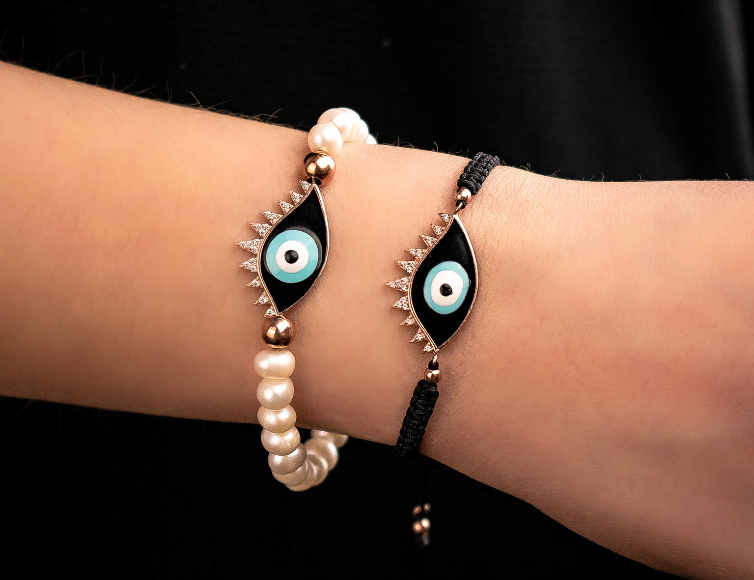 Bracelet silver 925 pink gold plated & with enamel evil eye