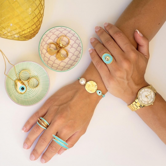 Ring silver 925 yellow gold plated & with enamel evil eye