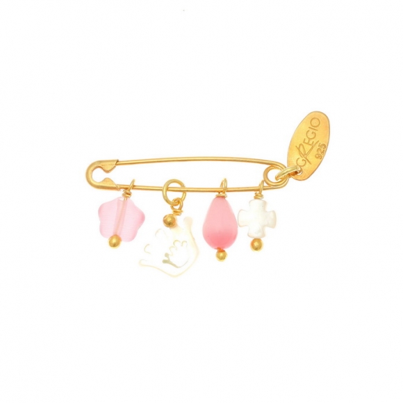 Pin silver 925 gold plated with hanging charms