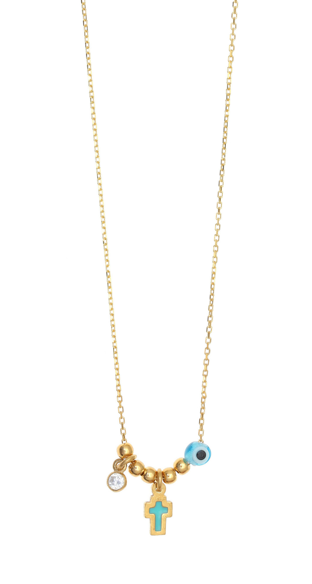 Necklace silver 925 gold plated & with enamel, evil eye and white zircon