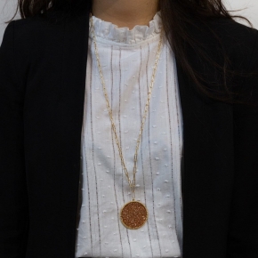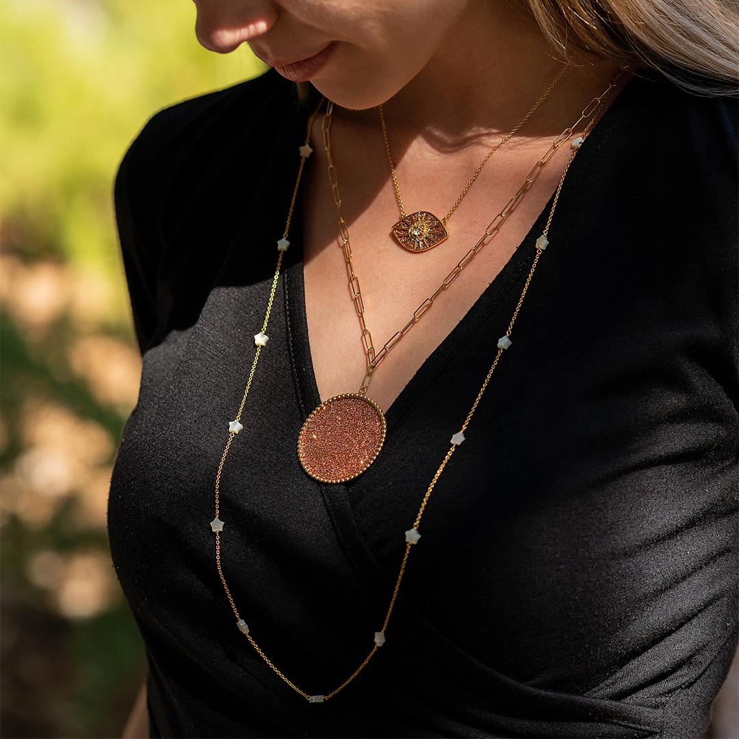Avoid contact with perfumes, creams and water when possible to protect the plating on the jewelry. Gold plated jewelry should be gently cleaned with a soft polishing cloth.