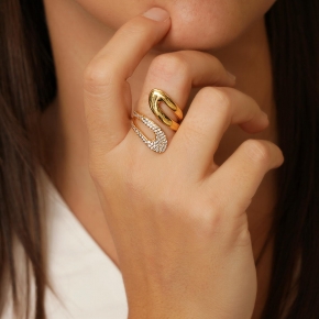 Ring silver 925 yellow gold plated with zirconia