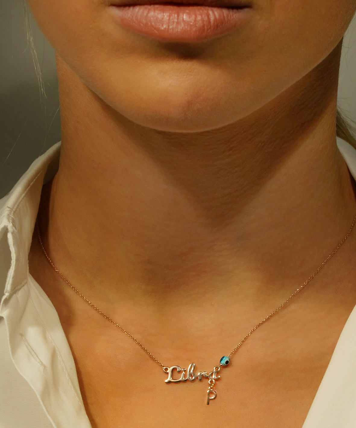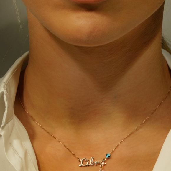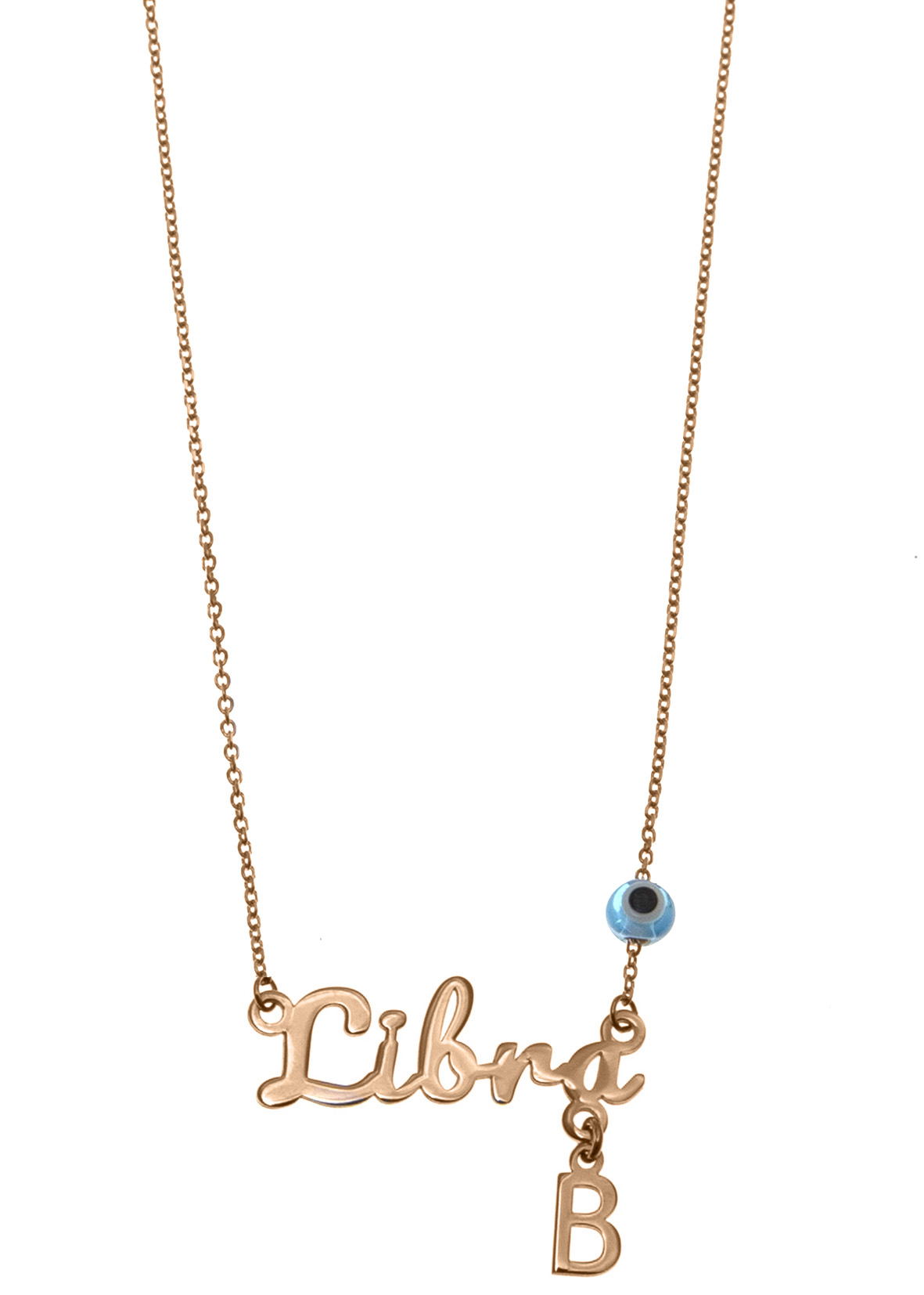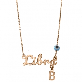 Necklace silver 925 zodiac (libra) pink gold plated with monogram