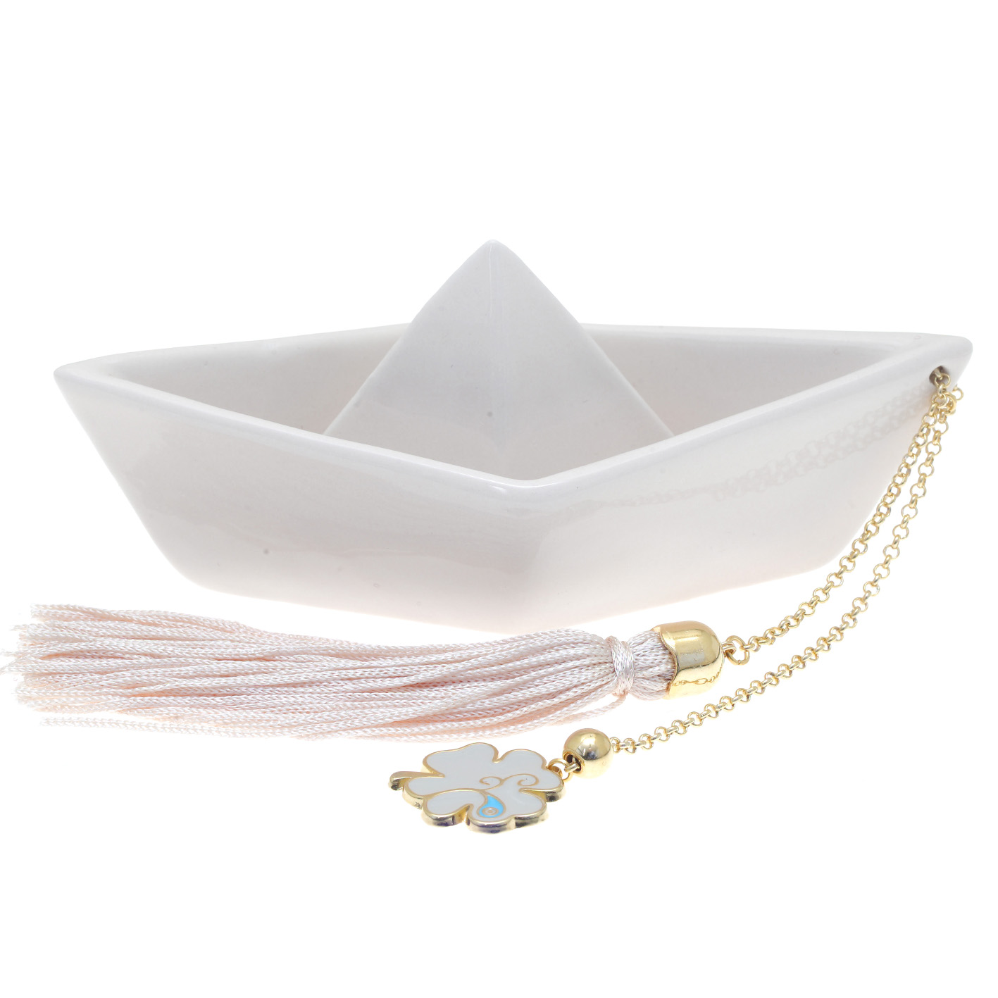 Lucky charm ceramic boat with fourleaf made of metal (pendant size 2.5 cm)