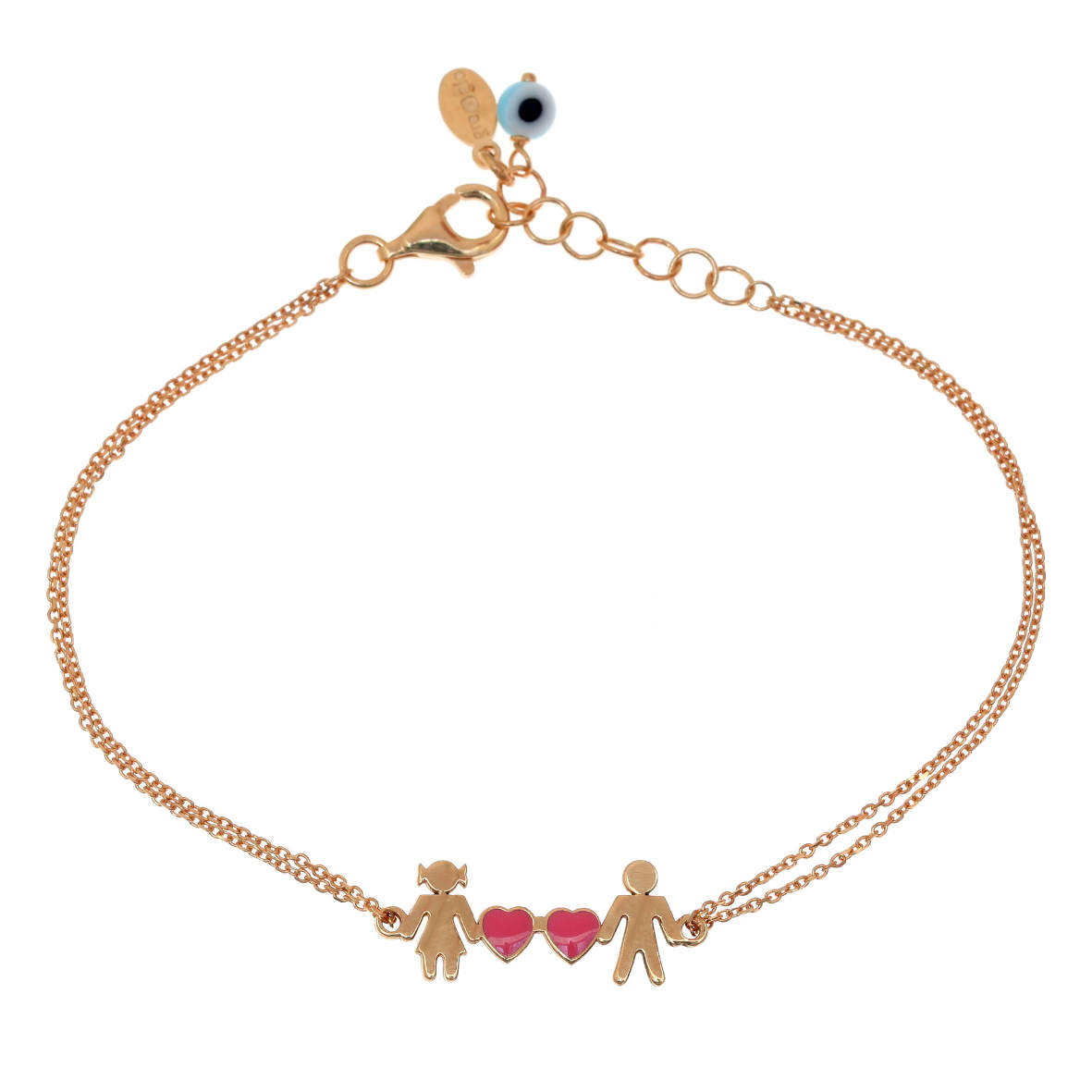 Bracelet silver 925 pink gold plated with enamel and evil eye