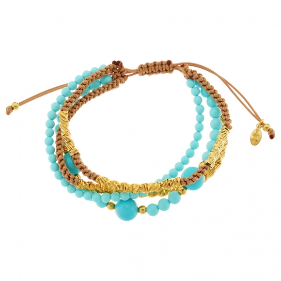 Bracelet silver 925 yellow gold plated with cord and turquoise