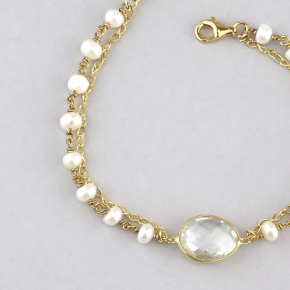 Bracelet silver 925 yellow gold plated with white quartz and fresh water pearl