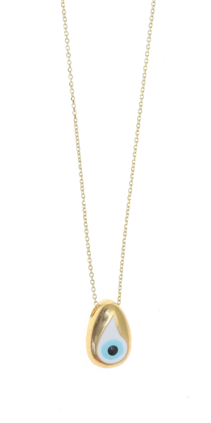 Necklace silver 925 yellow gold plated & with enamel evil eye (1.3cm x 0.9cm)