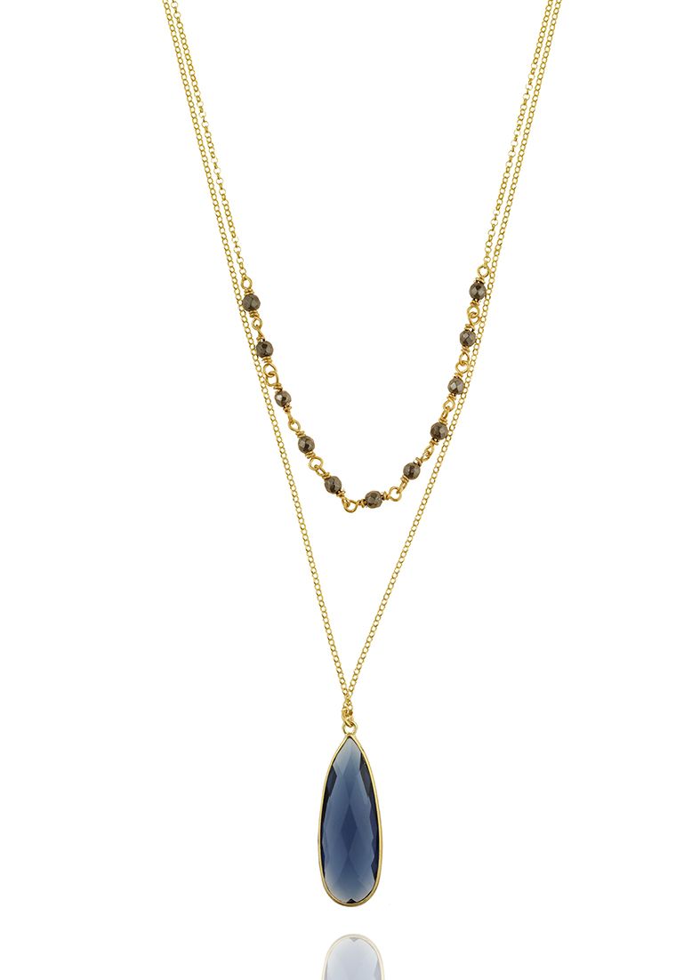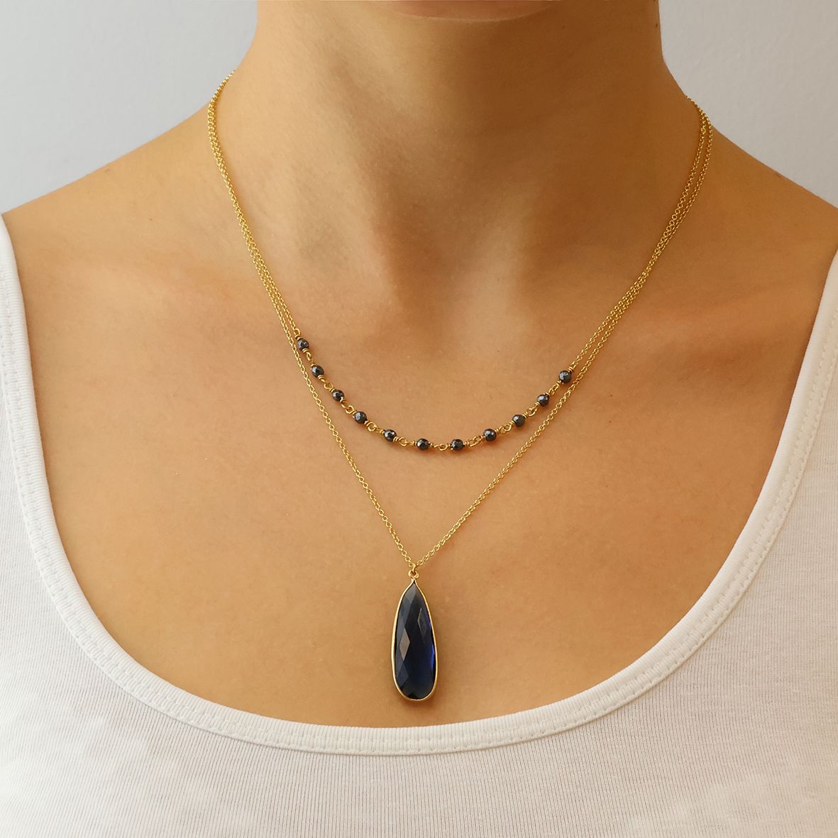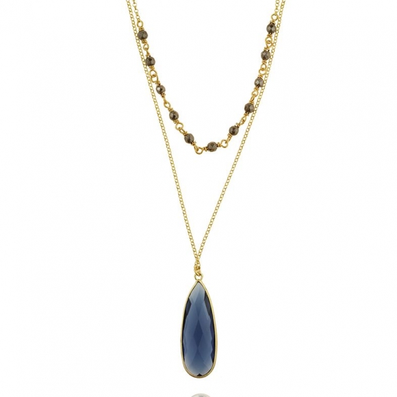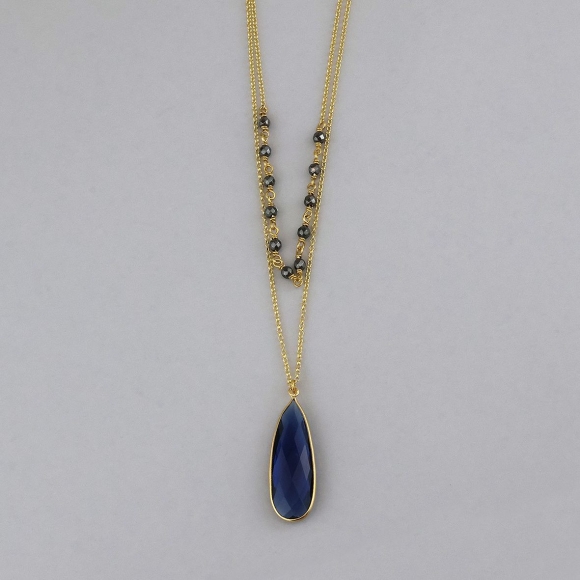 Necklase silver 925 yellow gold plated with kyanite quartz nd hematite